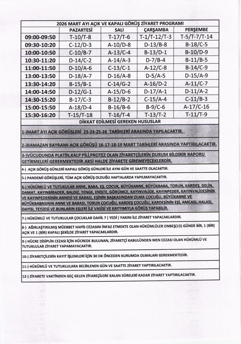 2026 YILI MART AYI ZİYARET PROGRAMI HAKKINDA DUYURUDUR.